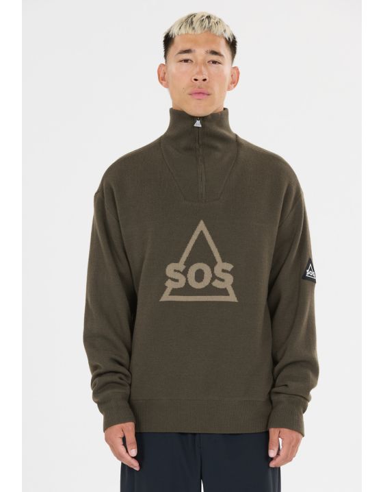 The upper material consists of 50% merino wool and 50% acrylic, and it sports iconic "SOS" logo at the chest. The merino wool component gives the windstopper a natural breathability as well as temperature- and odor controlling properties. The inside extra layer in 100% polyester will keep you extra warm and protected from the wind.